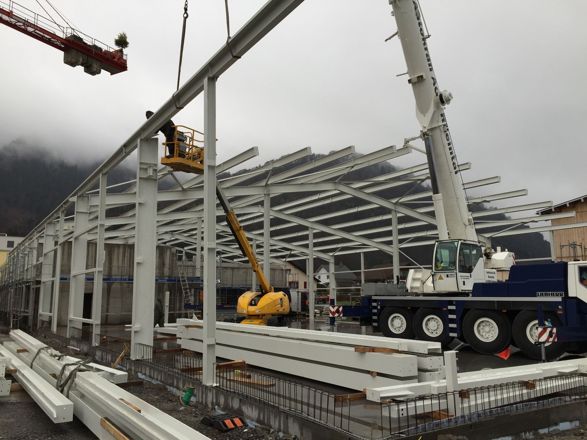 Die gesamte Stahlkonstruktion wird im Werk angefertigt. Auf dem Bauplatz setzen erfahrene Montageteams, die exakt aufeinander abgestimmten Elemente in kürzester Zeit zusammen.